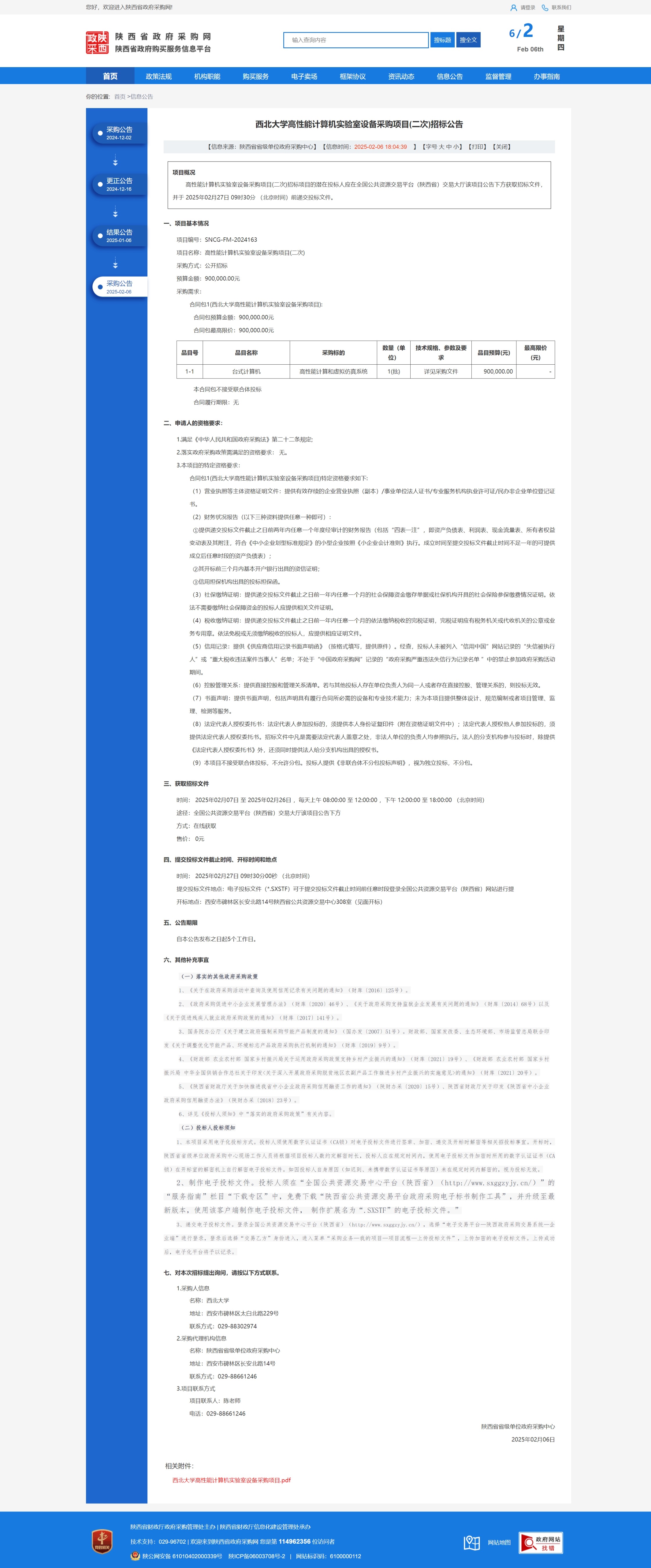 广发体育高性能计算机实验室设备采购项目(二次)招标公告 作者: 编辑:薛利娟 时间:2025-02-06 原公告链接:https://www.ccgp-shaanxi.gov.cn/freecms/site/shaanxi/ggxx/info/2025/8a69c97494792d530194d955079d37f3.html?noticeType=001011¬iceId=813dda34-e473-11ef-8063-08c0eb20c666