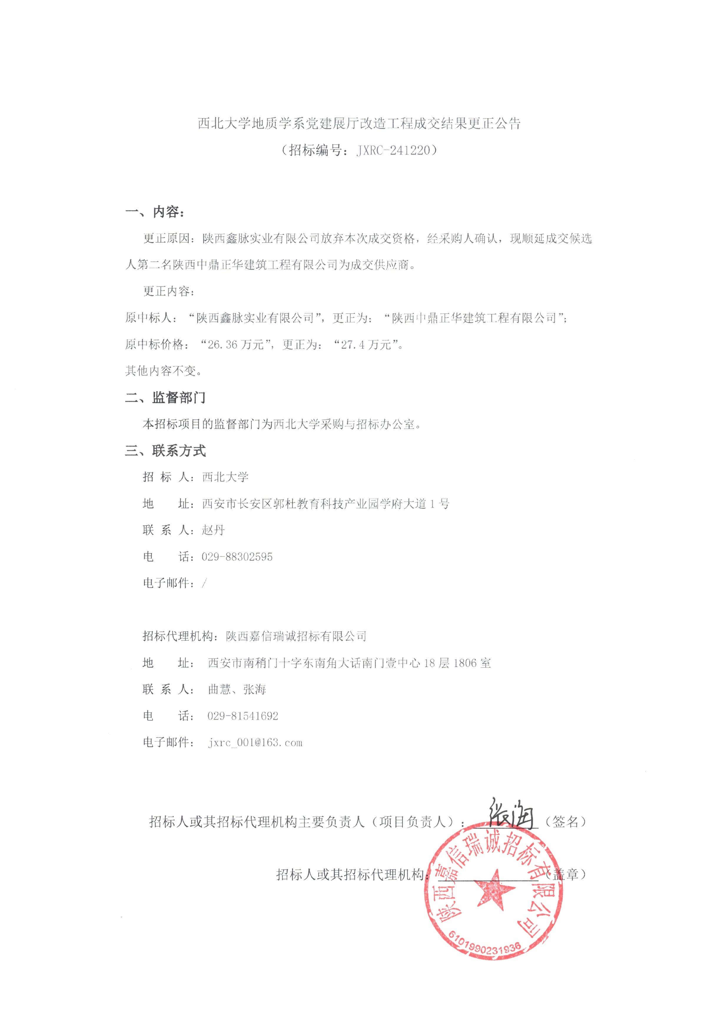 广发体育地质学系党建展厅改造工程成交结果更正公告