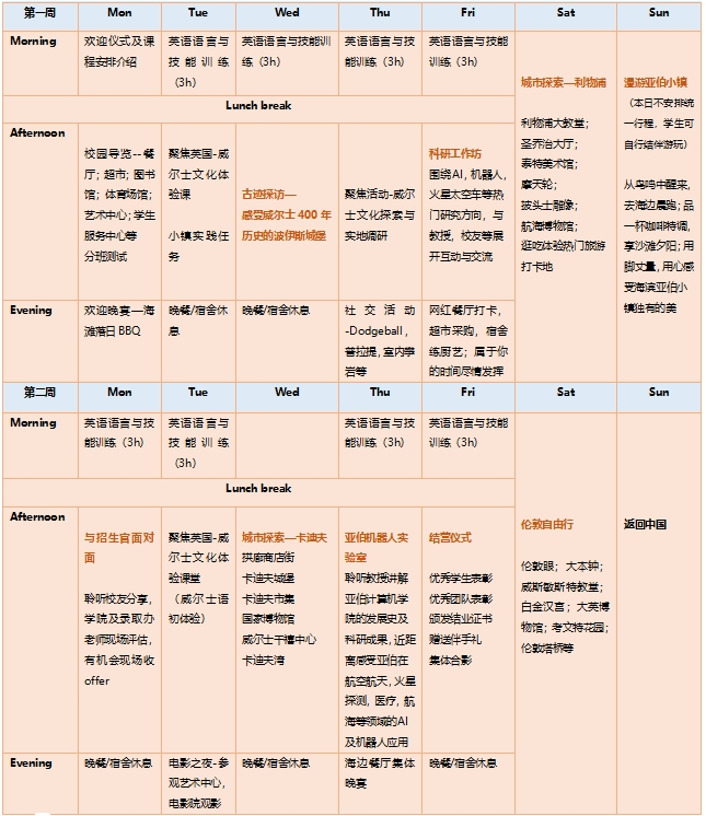 费用包含:学费,资料费,单人间宿舍费,校园卡含120镑(早餐+午餐,约1200元),接送机大巴费,城市游览交通费,以及亚伯校园内所有对外开放场馆,包括游泳馆,健身房,图书馆等校园设施的使用