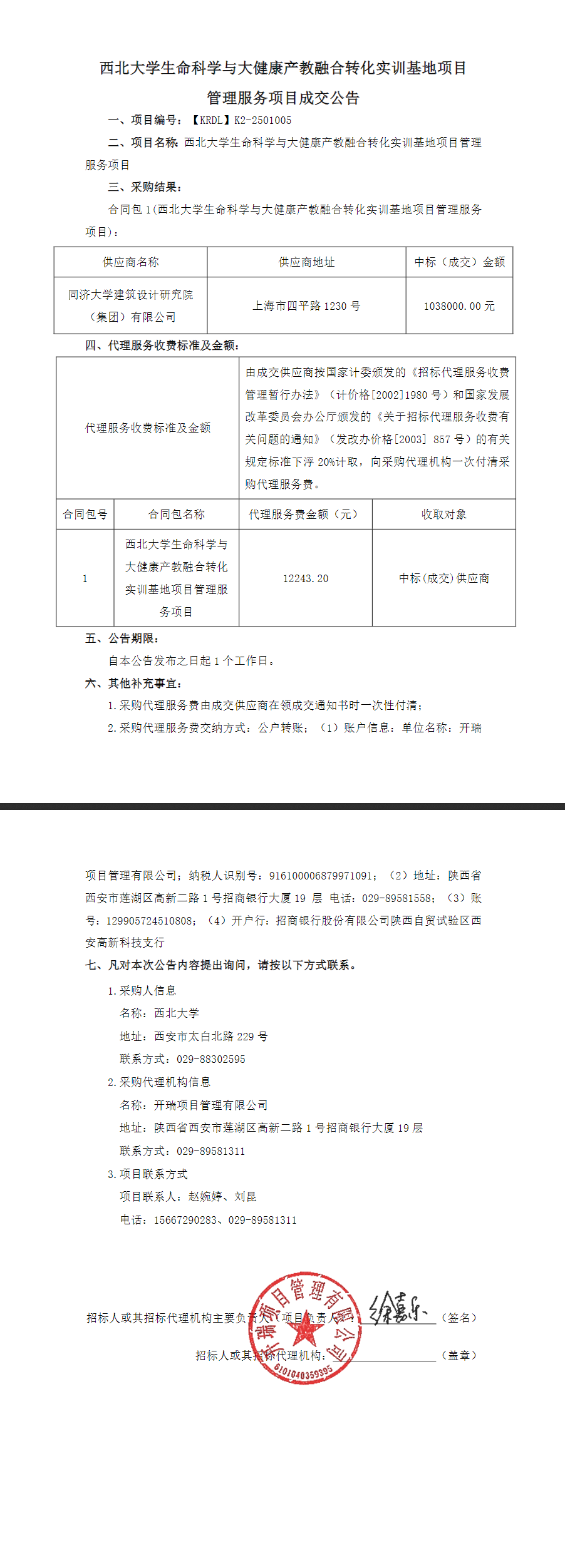 广发体育生命科学与大健康产教融合转化实训基地项目管理服务项目成交公告