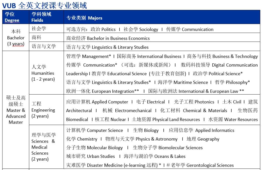 学生2025年9月份赴VUB完成一年制/两年制硕士学习,成绩合格者可获VUB硕士学位证书。(申请时可用学校开具的在读证明,如果被录取需要在大四毕业后向VUB提交本科学位公证件。)