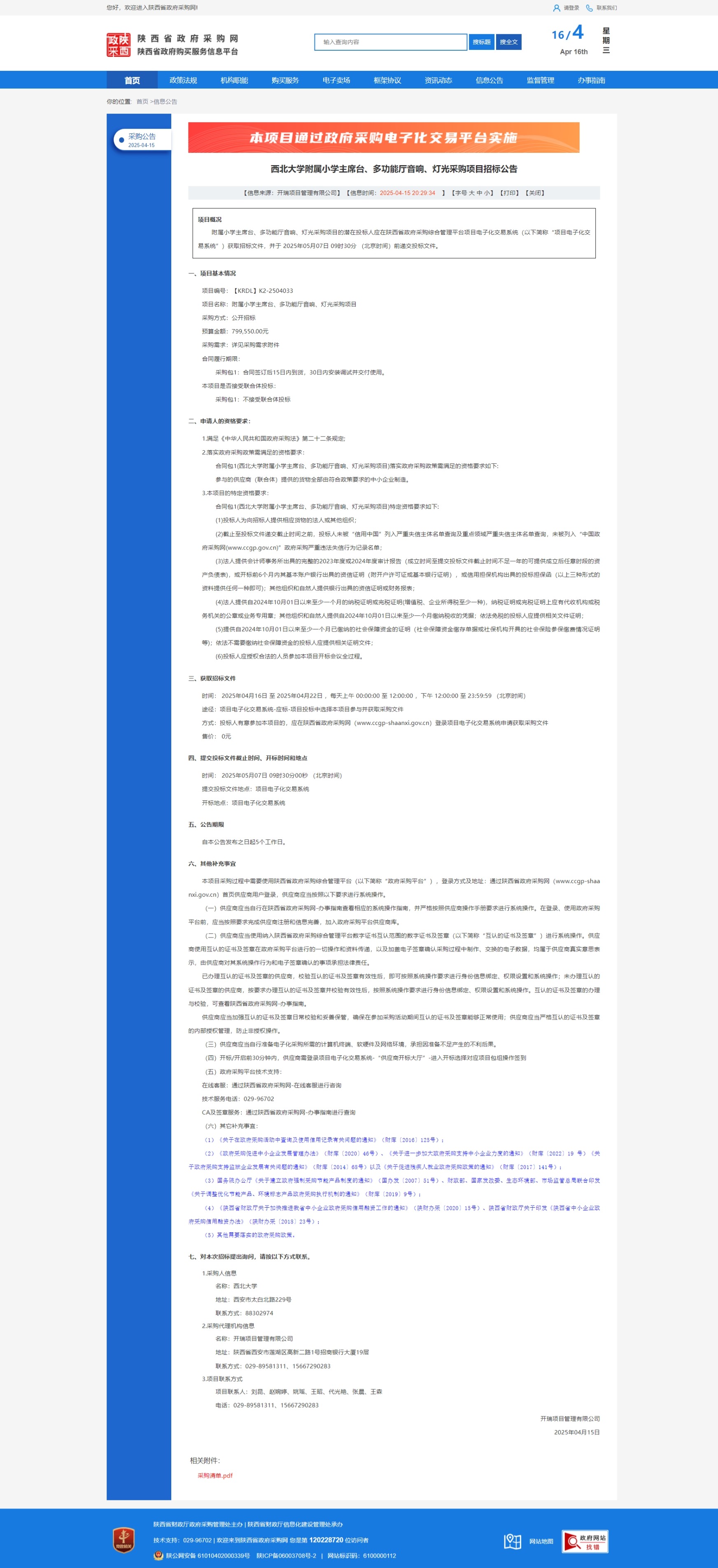 广发体育附属小学主席台、多功能厅音响、灯光采购项目招标公告 作者: 编辑:采购与招标办公室 时间:2025-04-16 原公告链接:https://www.ccgp-shaanxi.gov.cn/freecms/site/shaanxi/ggxx/info/2025/8a69c49e9615fc7a01963929e326689b.html?noticeType=001011¬iceId=23d89ef7-19f7-11f0-8063-08c0eb20c666