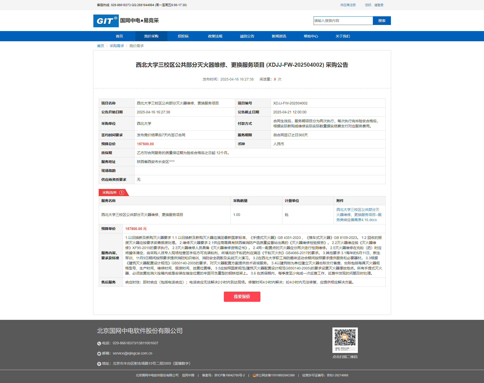 广发体育三校区公共部分灭火器维修、更换服务项目 (XDJJ-FW-202504002) 采购公告