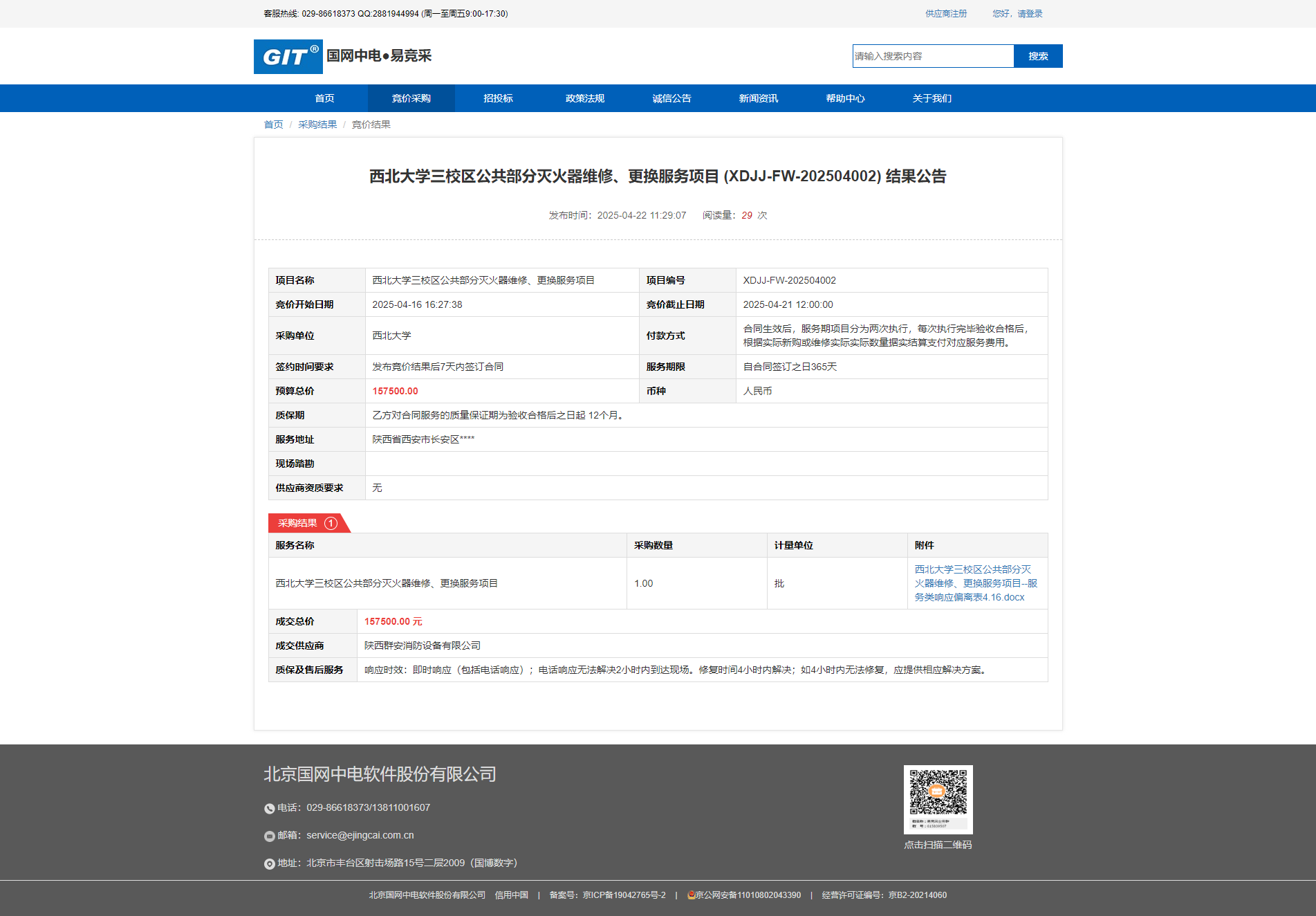 广发体育三校区公共部分灭火器维修、更换服务项目 (XDJJ-FW-202504002) 结果公告