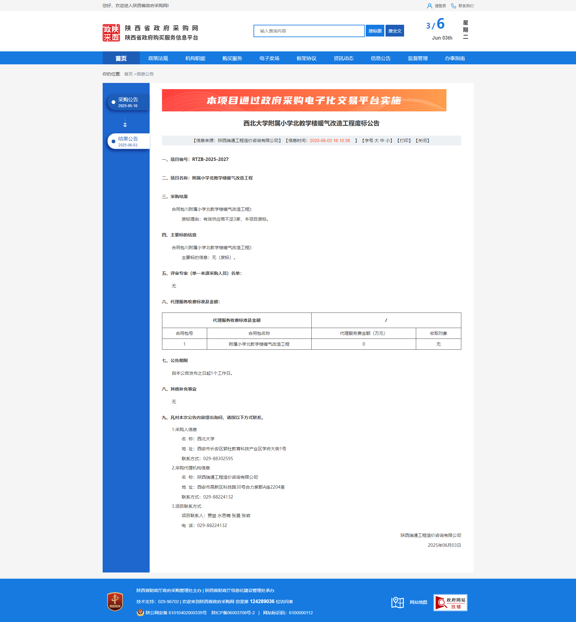 广发体育附属小学北教学楼暖气改造工程废标公告