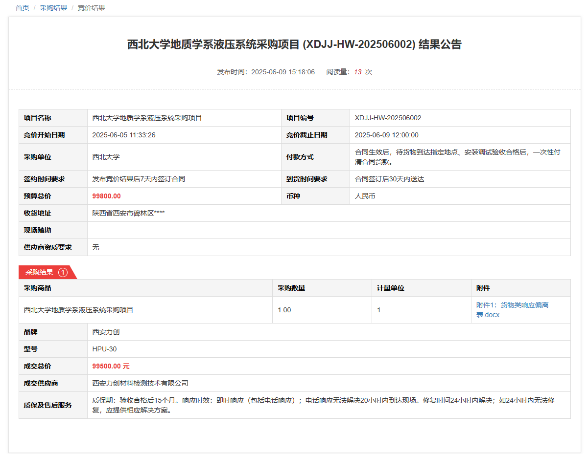 广发体育地质学系液压系统采购项目(XDJJ-HW-202506002)竞价结果公告 作者:采购与招标办公室 编辑: 时间:2025-06-09 原公告链接:https://www.ejingcai.com.cn/site/bidding/detail/18744