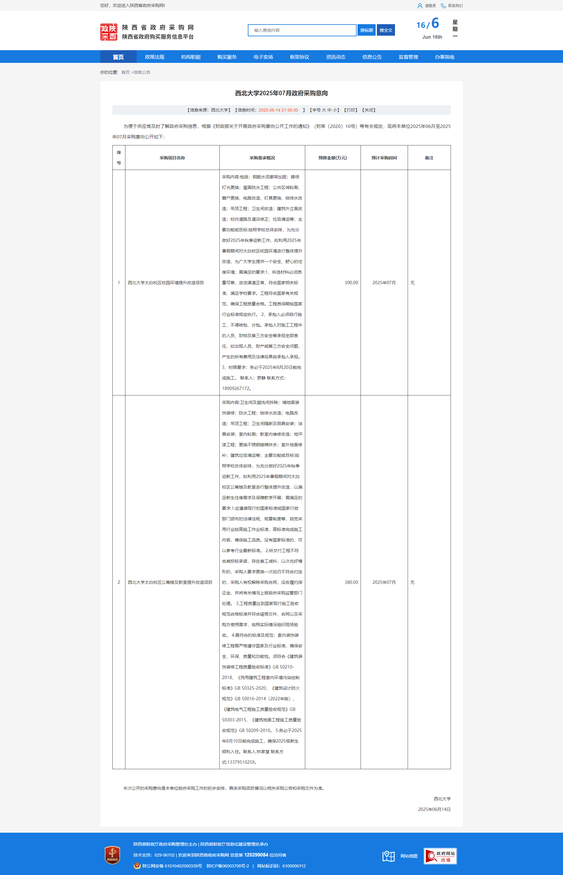 广发体育2025年07月政府采购意向