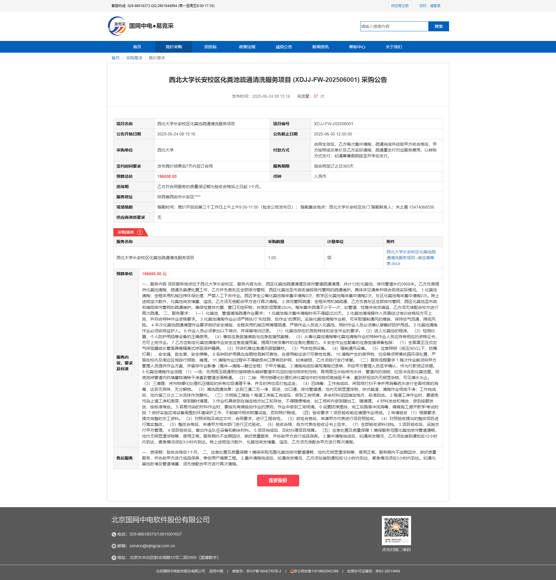 广发体育长安校区化粪池疏通清洗服务项目 (XDJJ-FW-202506001) 采购公告