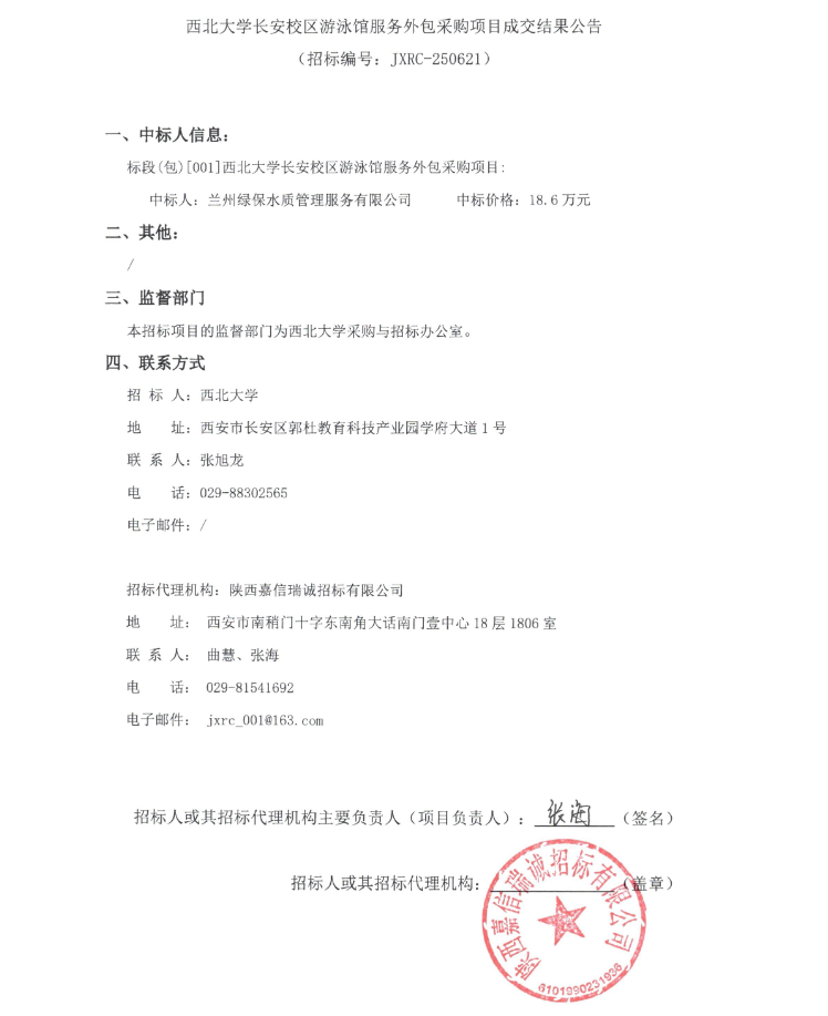 广发体育长安校区游泳馆服务外包采购项目成交结果公告