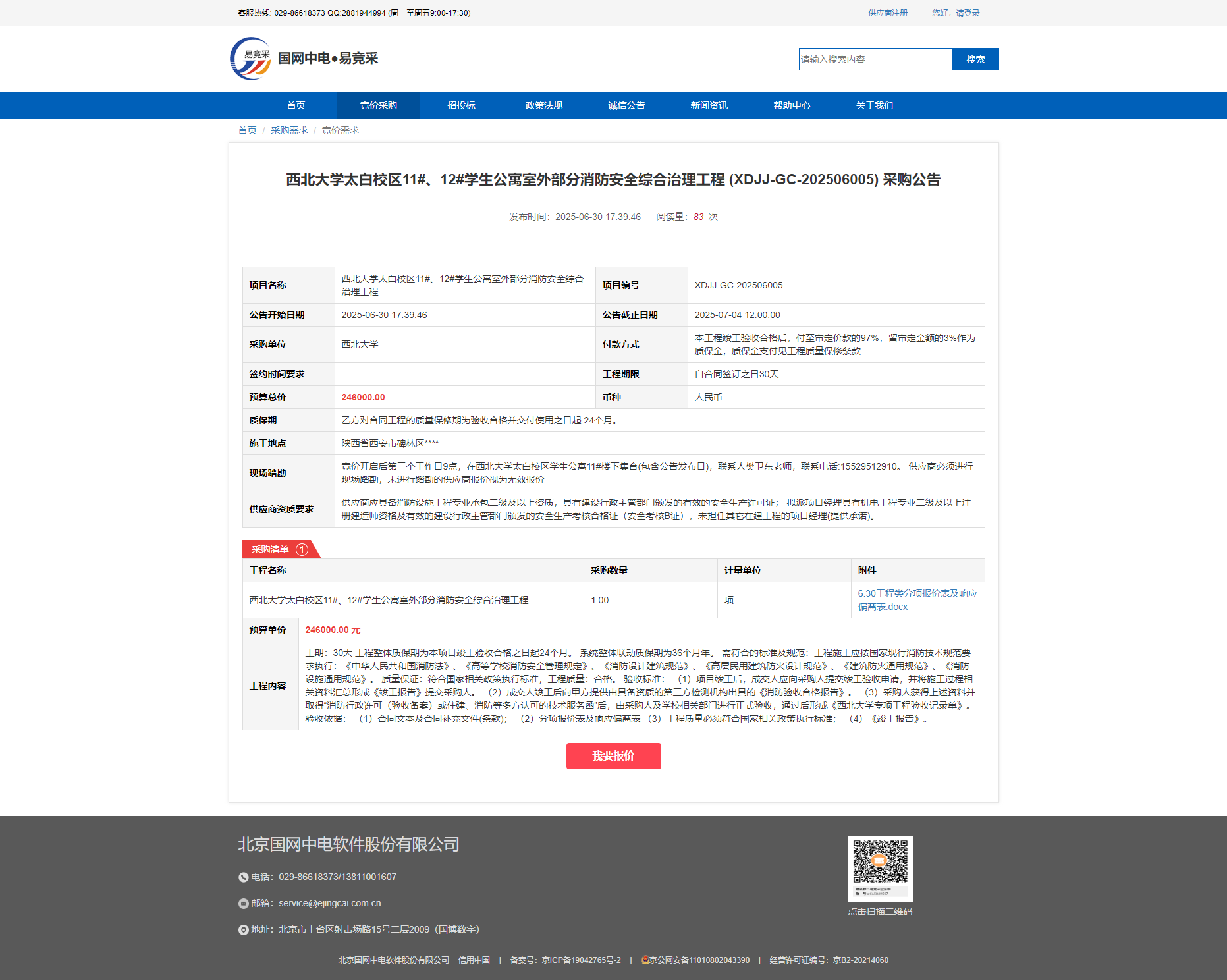 广发体育太白校区11#、12#学生公寓室外部分消防安全综合治理工程 (XDJJ-GC-202506005) 采购公告