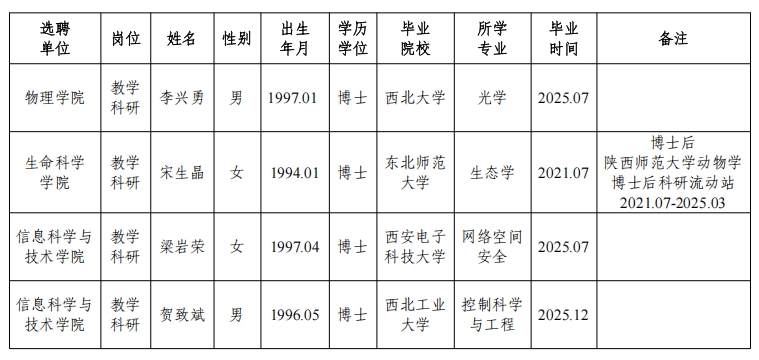 经资格审查,用人单位考查,学校专家评审会审议,广发体育拟确定下列人员来校工作,聘任方式为事业编正常选聘。本着公平、公正、公开的原则,现将本次拟选聘人员基本情况公示如下: