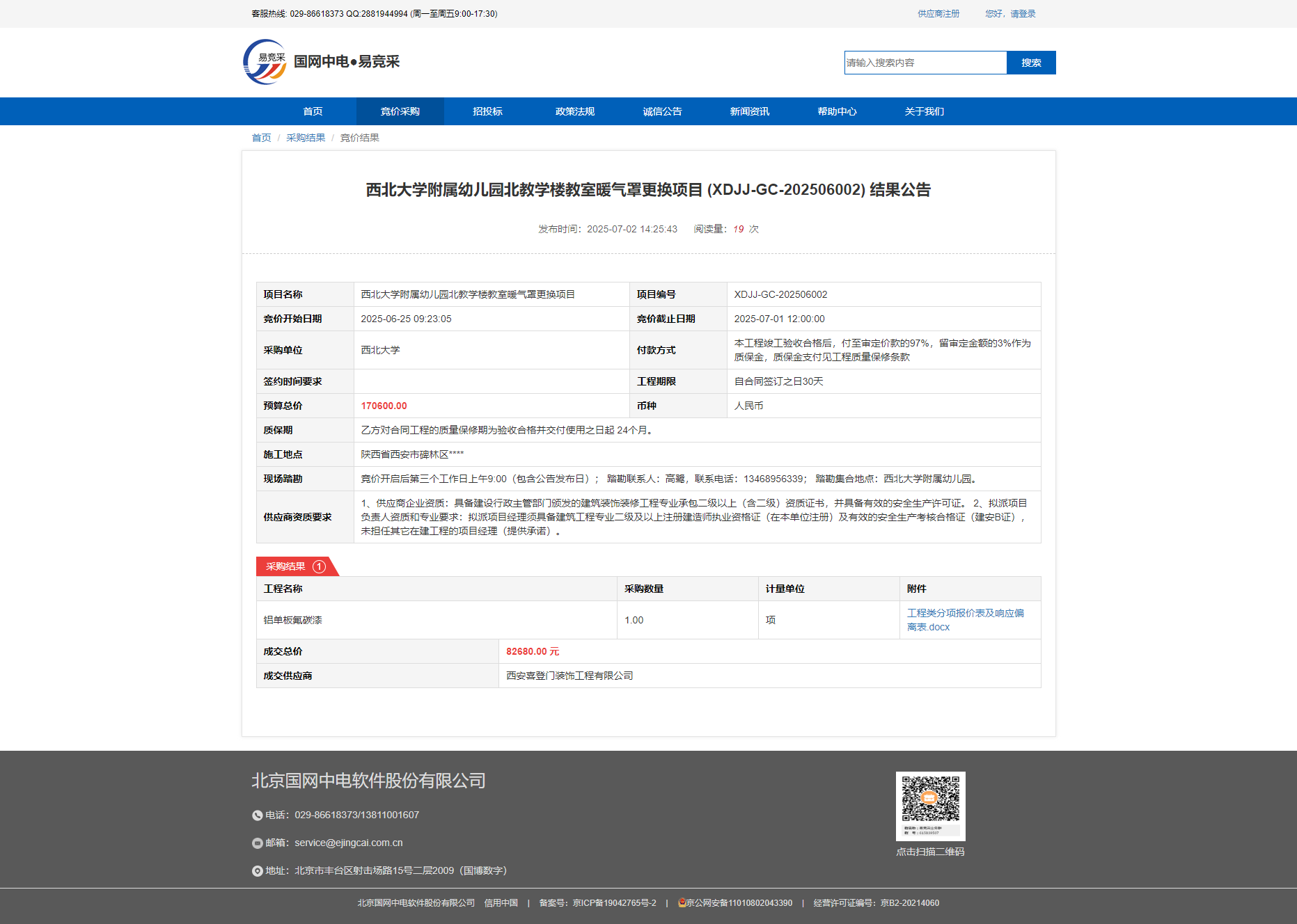 广发体育附属幼儿园北教学楼教室暖气罩更换项目 (XDJJ-GC-202506002) 结果公告