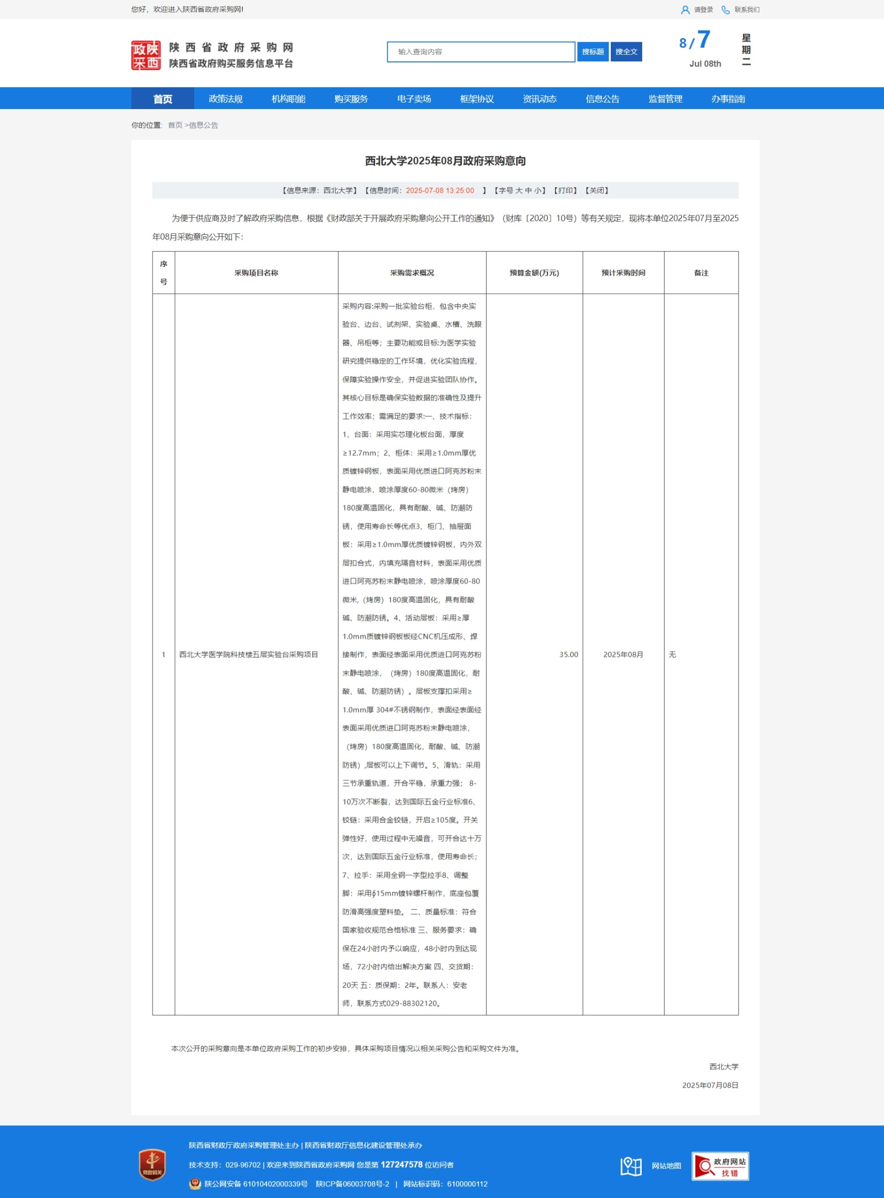 原公告链接:https://www.ccgp-shaanxi.gov.cn/freecms/site/shaanxi/ggxx/info/2025/8a69c68d97d2c4550197e87d6842455f.html?noticeType=59&noticeId=e4cb9cdd-5bbd-11f0-8063-08c0eb20c666
