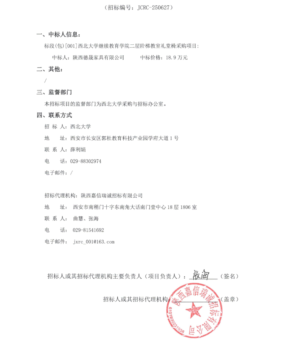 广发体育继续教育学院二层阶梯教室礼堂椅采购项目成交结果公告 作者: 编辑:采购与招标办公室 时间:2025-07-14 原公告链接:http://bulletin.sntba.com/resultBulletin/2025-07-14/2078964.html