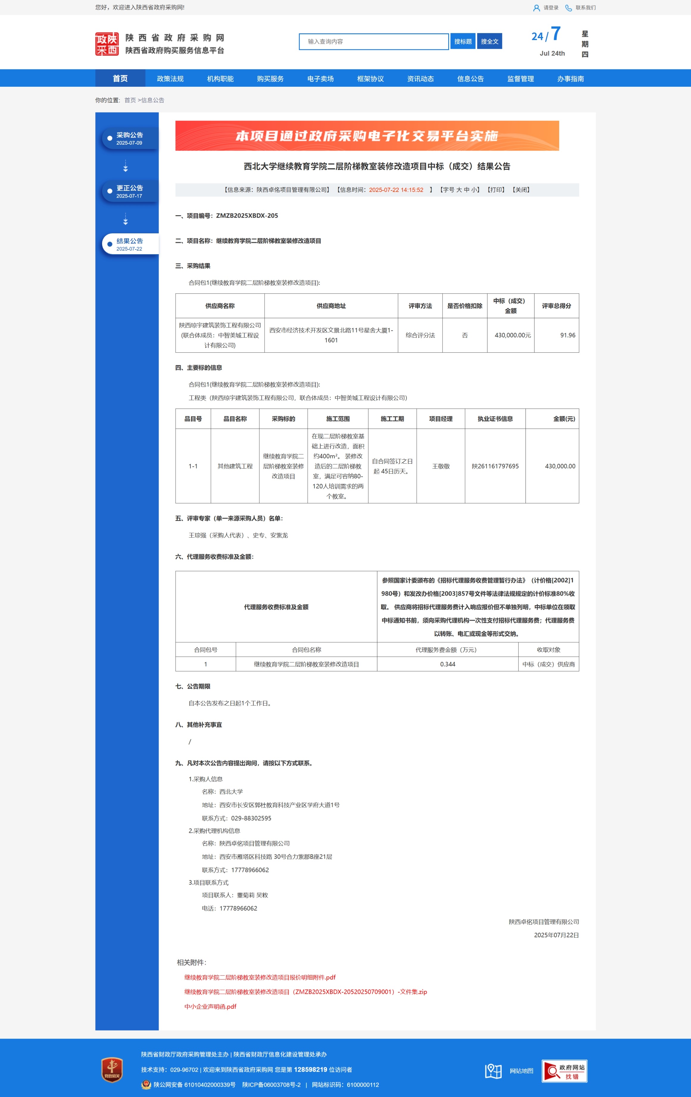 广发体育继续教育学院二层阶梯教室装修改造项目中标(成交)结果公告