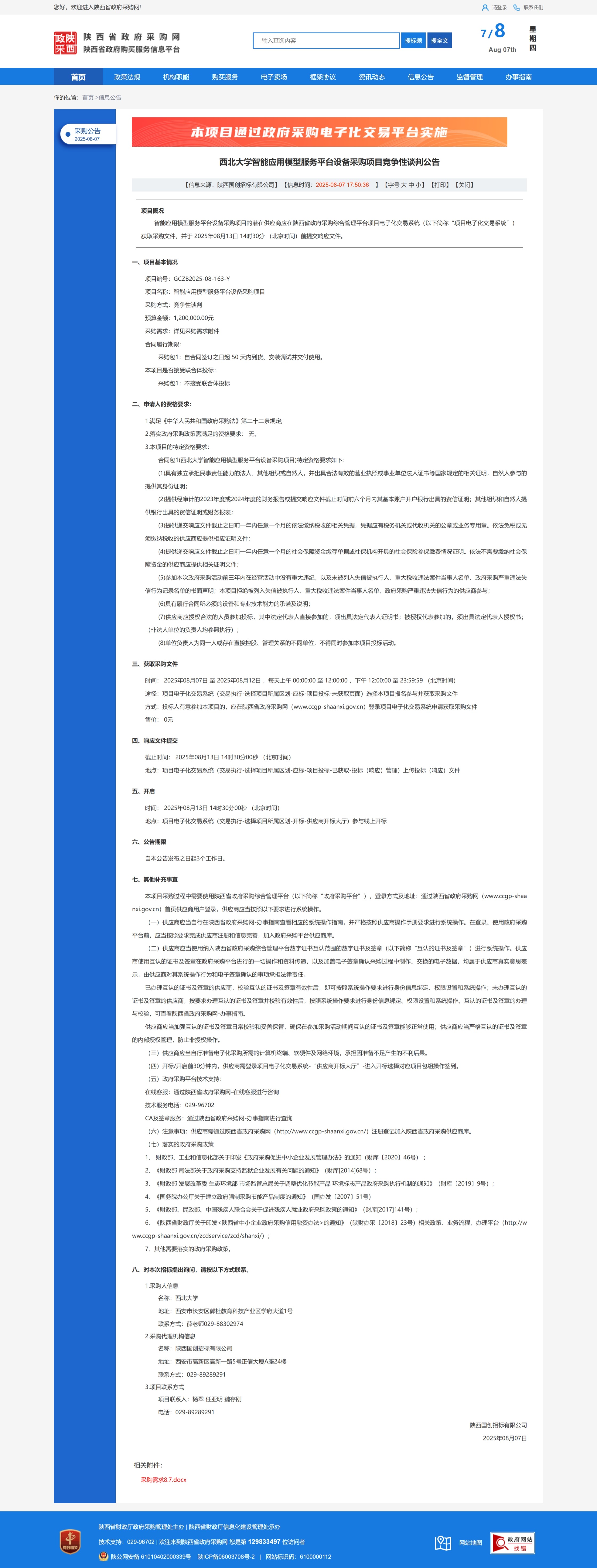 原公告链接:https://www.ccgp-shaanxi.gov.cn/freecms/site/shaanxi/ggxx/info/2025/8a69c1e29860ef6f019883d28fa93451.html?noticeType=001013&noticeId=056ac348-7376-11f0-8063-08c0eb20c666