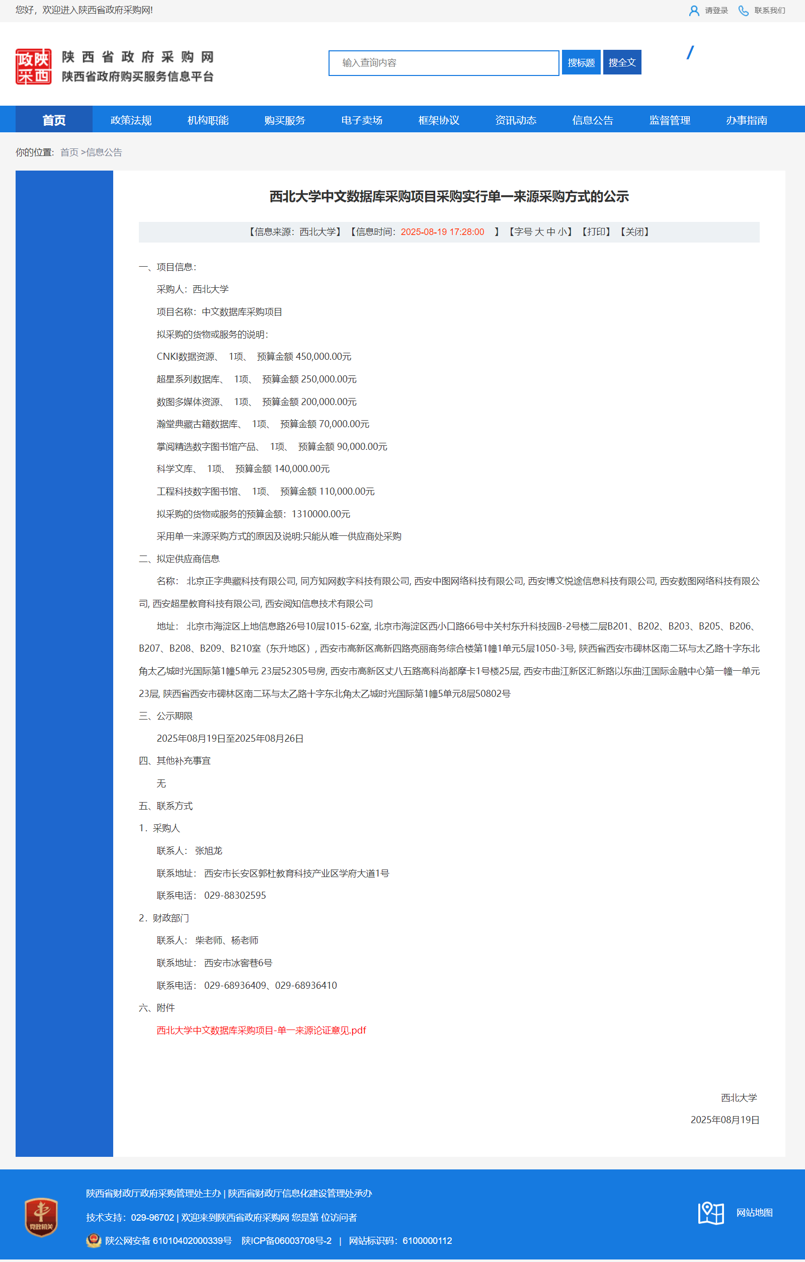 广发体育中文数据库采购项目采购实行单一来源采购方式的公示