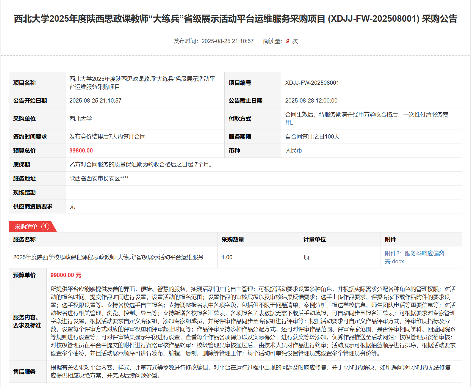广发体育2025年度陕西思政课教师“大练兵”省级展示活动平台运维服务采购项目(XDJJ-FW-202508001)竞价采购公告