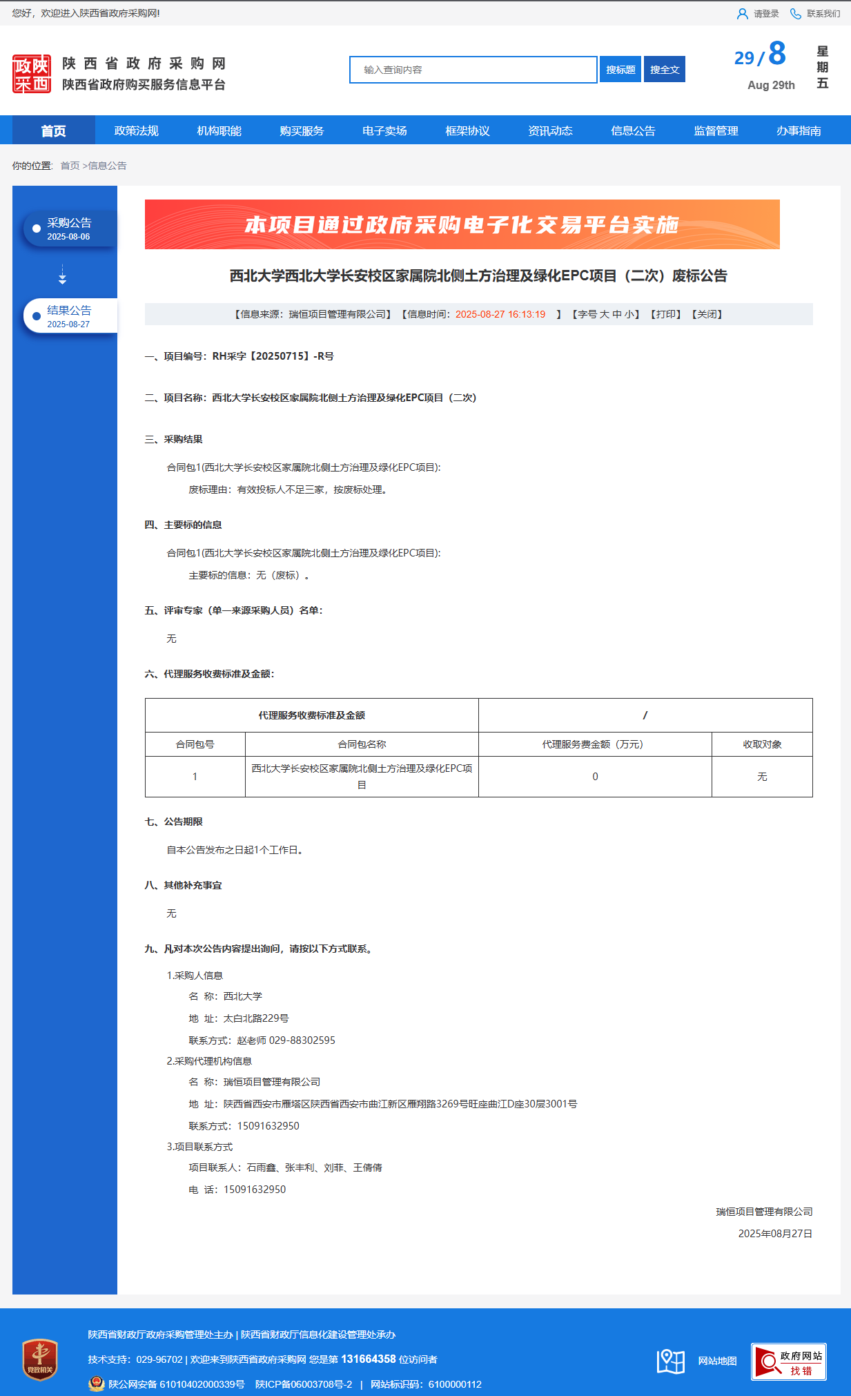 广发体育长安校区家属院北侧土方治理及绿化EPC项目(二次)废标公告