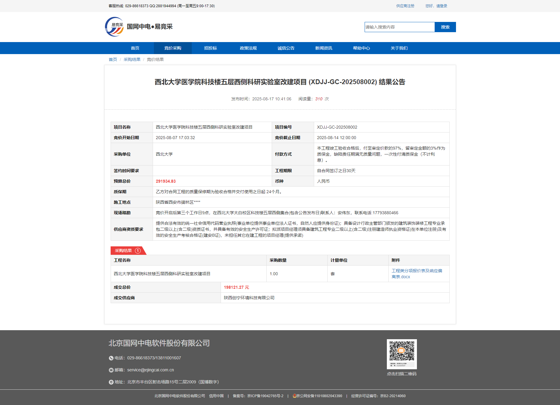 广发体育医学院科技楼五层西侧科研实验室改建项目 (XDJJ-GC-202508002) 结果公告