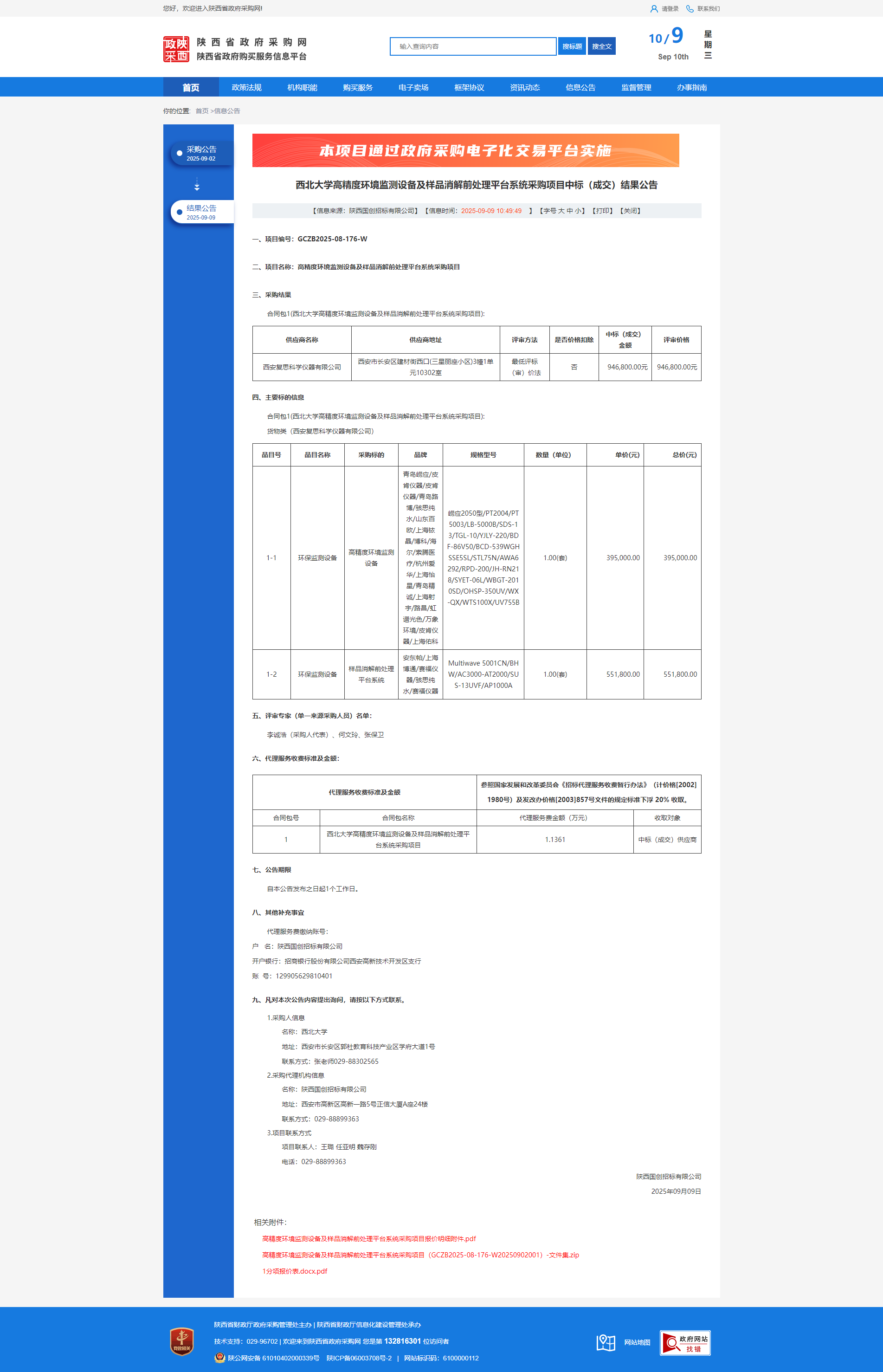 广发体育高精度环境监测设备及样品消解前处理平台系统采购项目中标(成交)结果公告