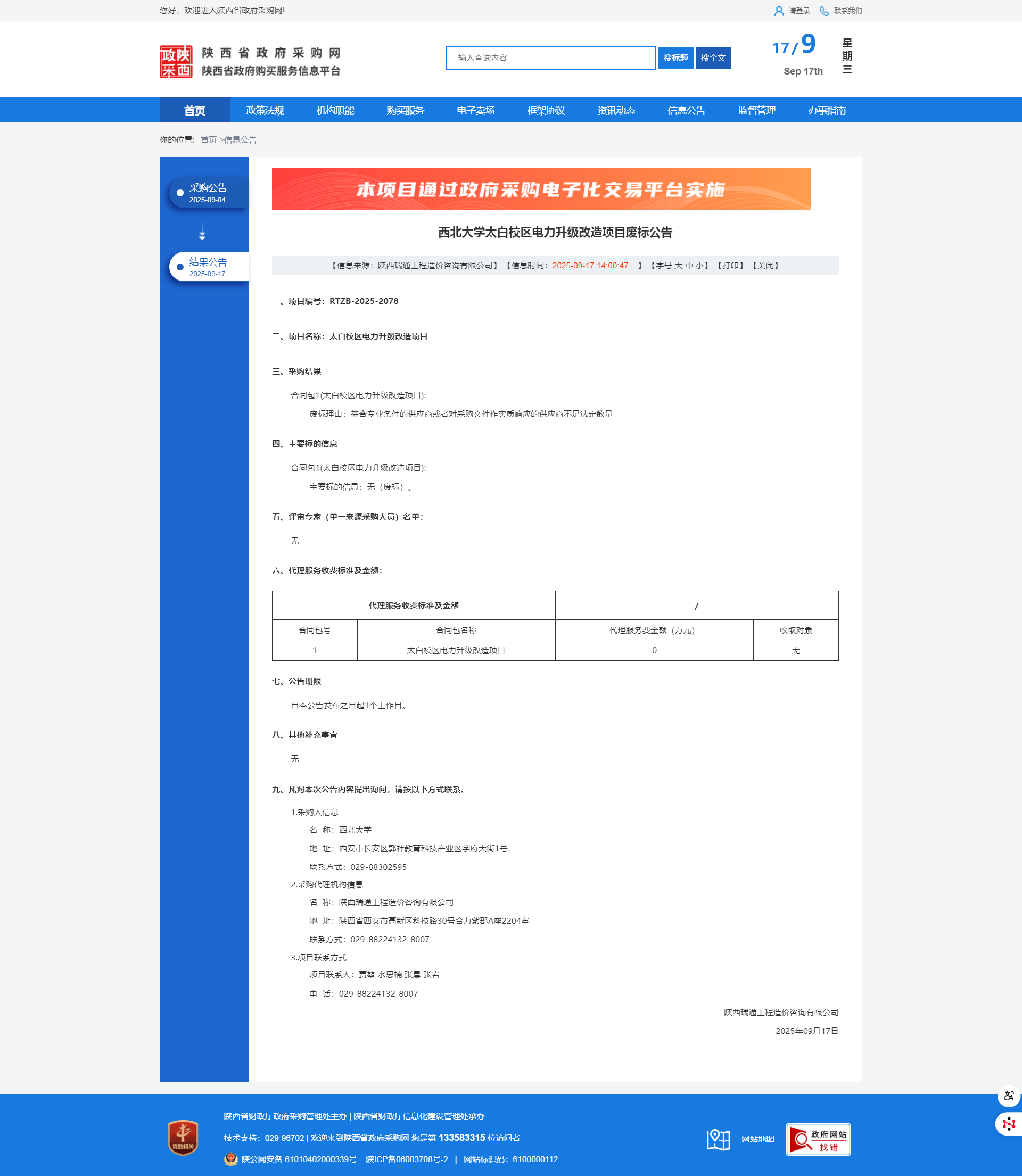 广发体育太白校区电力升级改造项目(二次)竞争性磋商公告