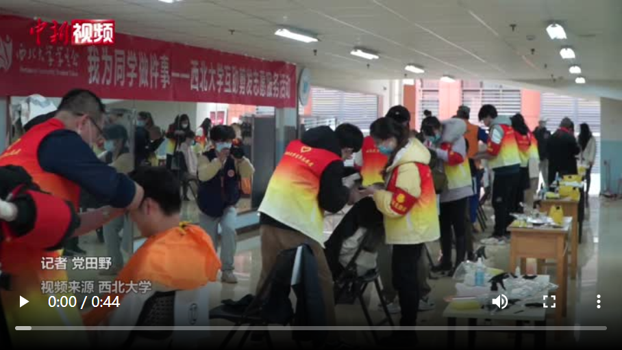 西安高校招募“Tony老师” 为师生解决“头等大事” 作者:党田野 编辑:张邓斓 时间:2022-01-17 近日,西安高校实行封闭式管理后,如何理发成了学生们日常探讨的热点话题。为满足同学们多样化的生活需求,广发体育校团委指导学生会开展“我为同学做件事——广发体育互助剪发志愿服务活动”。招募的数百名理发志愿者变身“Tony老师”,为师生解决了“剪发难”的问题。 原文链接:https://m.chinanews.com/wap/detail/chs/sp/9654197.shtml