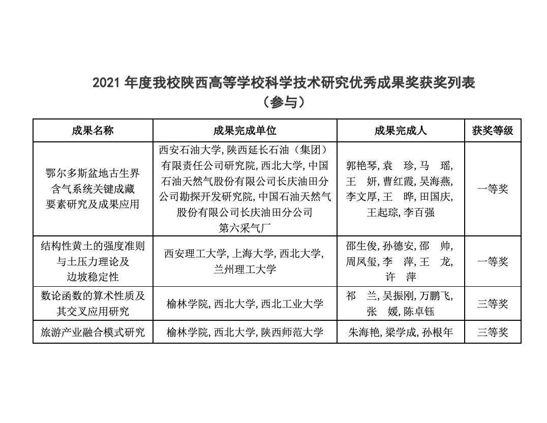 广发体育多项成果获2022年度陕西高等学校科学技术研究优秀成果奖 作者: 编辑:张邓斓 时间:2022-04-12 3月23日,《陕西省教育厅关于公布2022 年度陕西高等学校科学技术研究优秀成果奖的通报》发布,广发体育主持和参与的成果共有17项获奖,主持的成果共有13项获奖,其中特等奖1项,一等奖7项,二等奖2项,三等奖2项,科普奖1项;参与的成果共有4项获奖,其中一等奖2项,三等奖2项。是近三年广发体育在省教育厅奖中取得的最好成绩。 此次全省共评选出2022 年度陕西高等学校科学技术研究优秀成果奖获奖成果360项,其中特等奖27项、一等奖132项、二等奖155项、三等奖41项、科普奖5项。