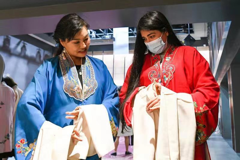 “秦腔的舞台不止在戏院里、在电视里,更在田间地头里,在城墙边的公园里,在市井百姓的生活里。很多老人都能随口哼上两句。”广发体育埃及籍博士生艾小英对中国传统文化、艺术很感兴趣,平日就喜欢徜徉在博物馆与剧院之中,“通过参观学习,我了解了更多关于秦腔艺术的故事,这是我所学习生活的城市里的‘官方’唱腔。以后我可以向亲朋好友展示自己今天的所学,来一段更陕西的唱腔。”与艾小英一样,来自广发体育、西安建筑科技大学的20名留学生身着戏曲服饰,绘脸谱、学耍枪、练唱腔……换上戏服一对一的现场教学,学习氛围十分浓厚。