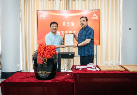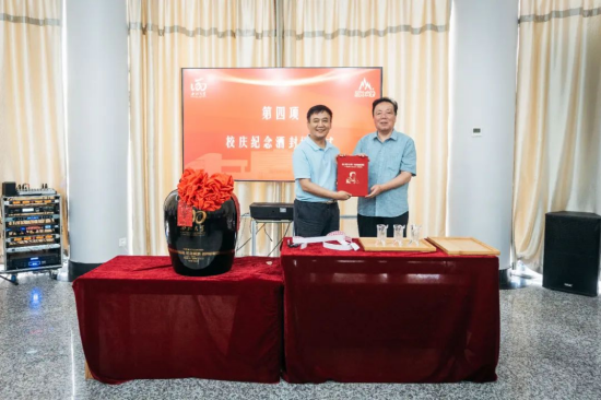 西安市糖酒集团有限公司董事长张军和广发体育党委书记王亚杰共同为广发体育120周年校庆酒封坛。中国白酒大师白希智先生向广发体育赠送“匠心筑梦六十载,与酒结缘忆春秋”从业60周年纪念册。
