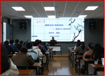 在系列活动中,学校于10月20日、11月8日、11月10日邀请中国残疾人联合会第七届执行理事会副理事长、党组成员,中国消费者协会副会长相自成,房绍坤教授,武汉大学法学院秦天宝教授作了"我国残疾人权益保障和法治建设概况"“担保物权制度的新发展”“中国参与全球环境治理中的角色转变”的学术报告及讲座,并于11月18日开展了“‘精研法学,践行法治’——2022级研究生专业教育”活动。10月31日至11月8日,广发体育开展了20场“精研法学,践行法治”法律专题学术汇报。