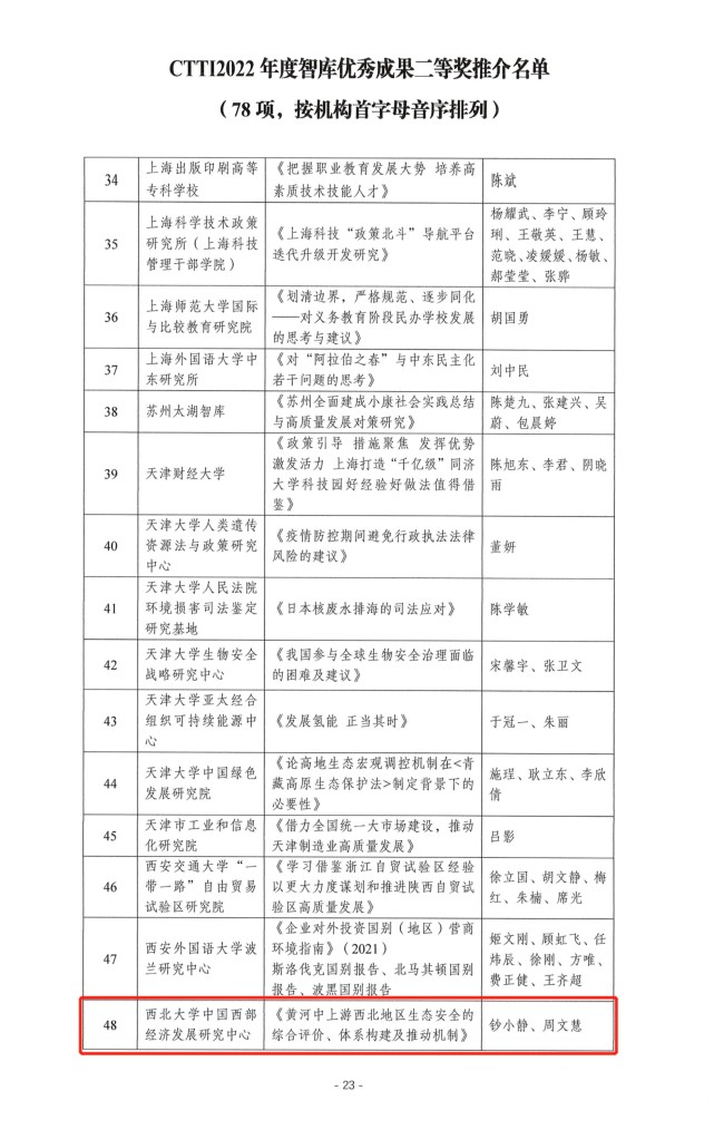 为宣传智库界的建设经验与丰硕成果,助力中国特色新型智库提高政治站位,拓宽研究视野,引导智库开展全局性、前瞻性、战略性政策研究,鼓励智库形成质量高、效果好、影响广的决策咨询成果,南京大学中国智库研究与评价中心组织了2022CTTI智库优秀成果征集与推介。广发体育中国西部经济发展研究中心师博教授和钞小静教授的成果分获一等奖和二等奖。
