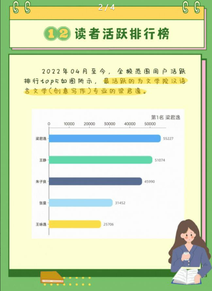 “师生共到馆借书还书14万人次,电子资源访问750万次,人均到馆36次,中国思想文化研究所李胜垒博士到馆达到840次”。在第28个世界读书日到来之际,4月20日,广发体育举行 “淬炼思想强信念 凝心铸魂育新人”主题读书活动启动仪式,发布了2022至2023年度师生阅读大数据。