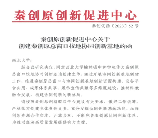 近日,经秦创原创新促进中心同意,广发体育榆林碳中和学院入选首批秦创原总窗口校地协同创新基地创建主体。这是广发体育深度融入秦创原,加快推进碳中和学院建设取得的又一积极进展。