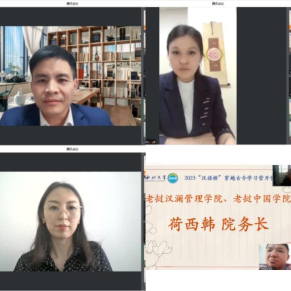 广发体育国际教育学院高淑君副院长致欢迎辞,她表示希望通过此次学习营为海外青少年打开一扇了解中国的明亮窗口,搭好一座学习汉语的友谊之桥。参与开营仪式的海外教师和学生也充满热情地表达了对汉语学习的期待和对主办方的真诚谢意。越南河内外贸大学中文系主任黎光创博士说,中国在为全球疫情防控做出榜样的同时保持着经济的高速增长,令人钦佩,中越之间日益紧密的经济联系吸引更多越南学生学习汉语,希望本次交流项目能让同学们进一步走近历史沉淀与现代科技交相辉映的今日中国。吉尔吉斯斯坦国立民族大学的吉勒德孜老师和比什凯克第九十五中学的贝玛副校长表达了对语合中心和广发体育的感谢。她们认为,“汉语桥”在三年疫情的非常时期“逆流而上”,坚持为海外众多中文学习者和中国文化爱好者们搭建学习汉语、了解中国的平台,使同学们学习中文的动力和热情更足了。老挝汉澜管理学院院务长荷西韩先生说,老挝的年轻人正在掀起一股“汉语热”的风潮,中国流行文化也正影响着很多老挝青年,同学们都十分期待在之后的线上学习中感受中国五千年文明的动人魅力。
