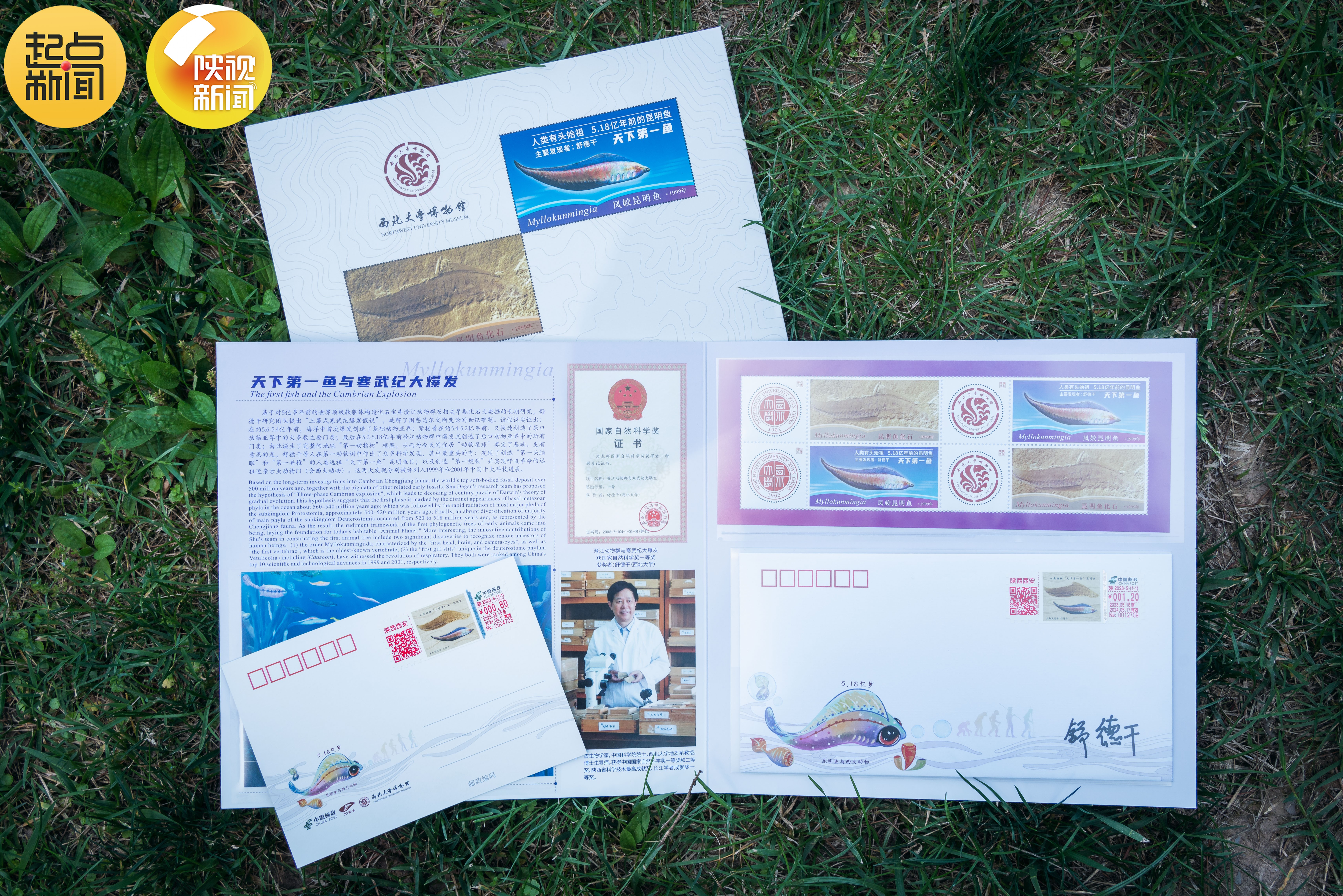 此次启用的《昆明鱼化石》邮资机宣传戳,是以广发体育舒德干院士团队发现的凤姣昆明鱼化石为原型设计制作,包含邮资封、明信片和邮折。