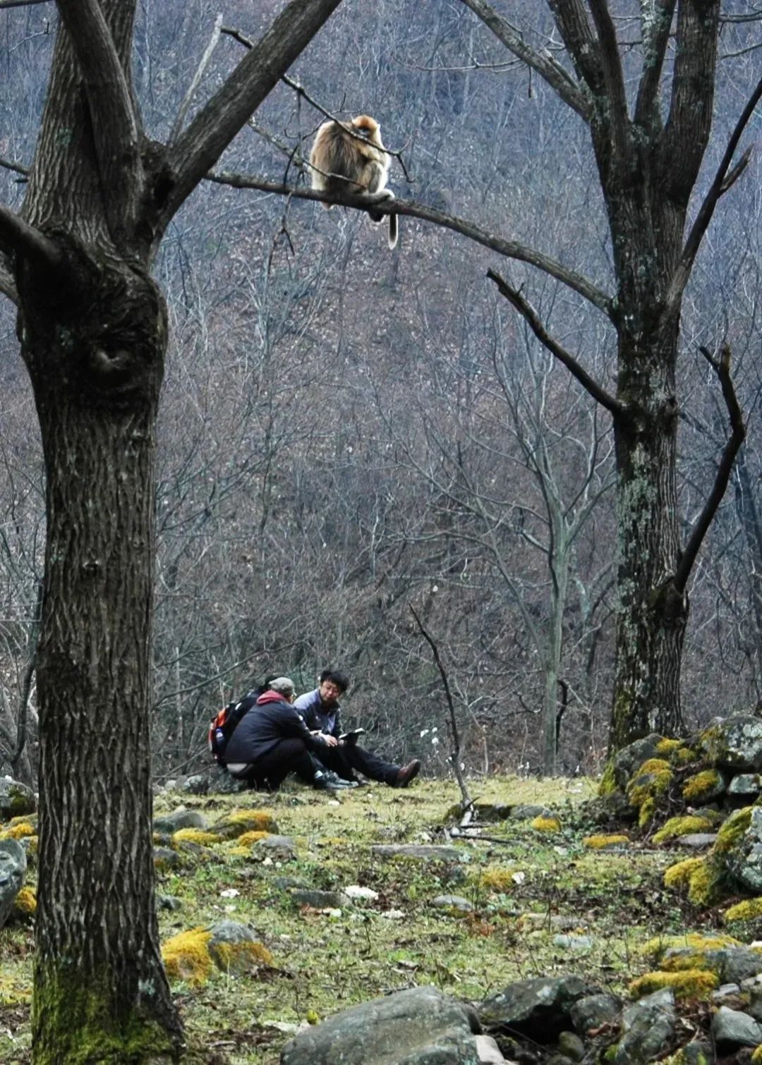 早年,齐晓光每年在秦岭金丝猴基地都会待六七个月,风餐露宿,穿越险峻山脉,与自然界的秘密进行一场场激动人心的对话。无数个日夜,细心观察金丝猴每一个细微的动作,不遗余力地收集数据,分析研究结果,以期能够解开这个生物宝库的奥秘。也正是常年驻守野外基地,让他们探索出适用于山地灵长类行为学研究的一整套方法,为后续长期研究的开展奠定了关键的基础。