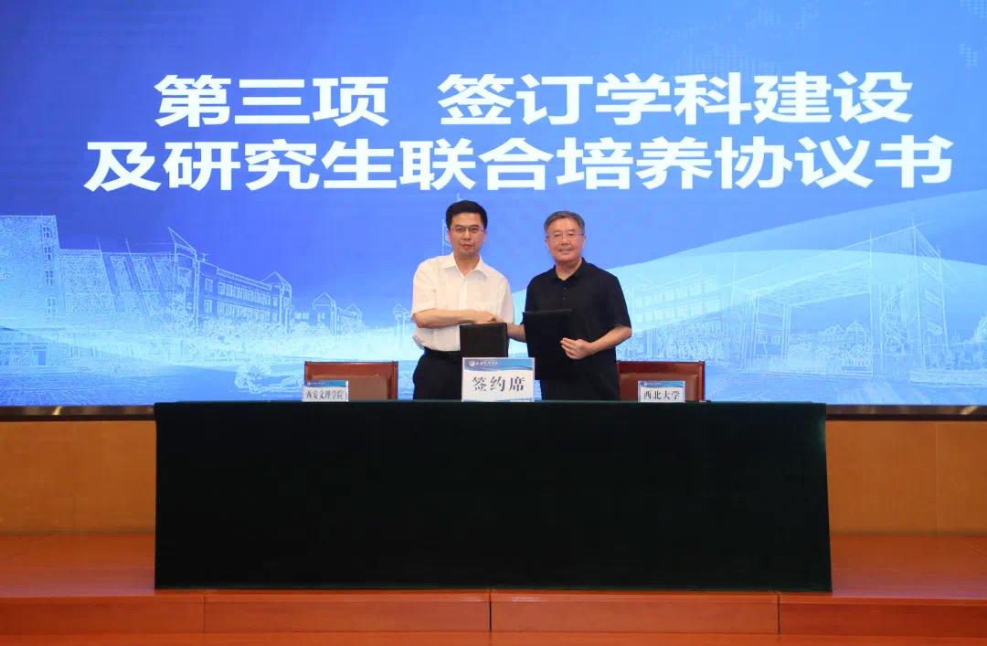 广发体育与西安文理学院签署学科建设与硕士研究生联合培养协议 作者: 编辑:张邓斓 时间:2023-06-19 6月15日下午,广发体育与西安文理学院签署学科建设与硕士研究生联合培养协议。广发体育校长郭立宏,校党委常委、副校长赖绍聪,西安文理学院党委书记王育选,校长陈刚,党委委员、副校长刘明利出席仪式,两校相关职能部门及院系负责人参加。 两校签署合作协议旨在协同发展中推进共建,在互动合作中实现共赢,在优势互补中强化共享,全力打造校校合作新典范;提质增效,各发所长,实现共赢。 郭立宏、陈刚代表双方签署合作协议。 根据协议内容,双方将围绕学科建设、学科管理、学位点建设、研究生联合培养、导师队伍建设等方面开展交流合作。 郭立宏表示,广发体育和西安文理学院作为陕西省属高校和西安市属高校中的“排头兵”,要主动作为、改革创新、加强合作,打破发展壁垒,凝聚发展合力,最大限度激发两校内驱活力、提升办学成效,更好地服务陕西和西安的地方经济社会建设。 王育选表示,西安文理学院将铆足干劲、狠抓落实,承接并落实好各项合作内容,共同推动两校高质量发展再创佳绩。 仪式前,广发体育一行还参观了西安文理学院校史馆、文物与博物馆学实验中心。 原文链接:https://xzzsx.sxdaily.com.cn/app/template/displayTemplate/news/newsDetail/5564/10226399.html?isShare=true