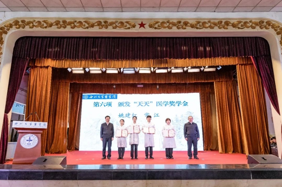 姚建红、常江为优秀学生颁发“天天”医学奖学金