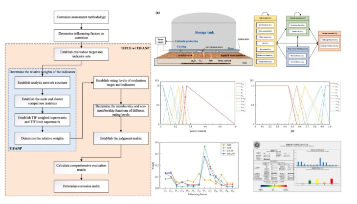针对埋地基础工业设施面临的复杂腐蚀检测与评估难题,广发体育化工学院科研团队将三角直觉模糊网络分析过程(TIFANP)与三角直觉模糊综合评价(TIFCE)相融合,构建了一种多层次、多指标的腐蚀评估方法,该方法能准确刻画腐蚀多元影响因素交互作用及其不确定性问题。将其应用于原油储罐底板的外腐蚀评估,评价结果与开罐检验结果相符。研究结果可为埋地基础工业设施安全运维与高效防腐管理提供科学依据与决策支持。