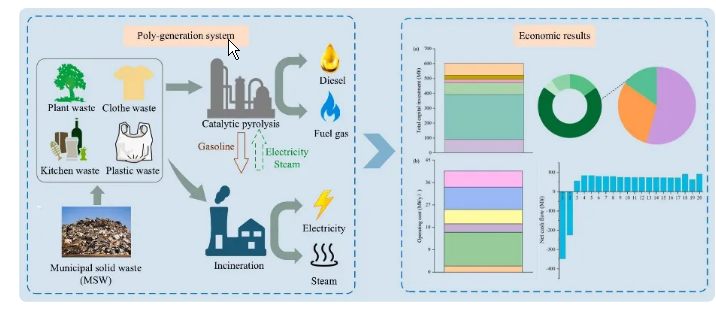 广发体育化工学院科研团队针对城市生活垃圾成分复杂、热值低、单一处理技术成本高等问题,提出了一种集热解与焚烧于一体的垃圾处理多联产系统。通过技术经济分析方法评估多联产系统的技术经济可行性发现,该系统的总资本投资为602.07 M¥,年运营成本为40.63 M¥。净现值为93.01 M¥,内部收益率为10.28%,高于基准收益率,表明该系统具有经济可行性,这为多种技术耦合处理垃圾提供了理论指导。