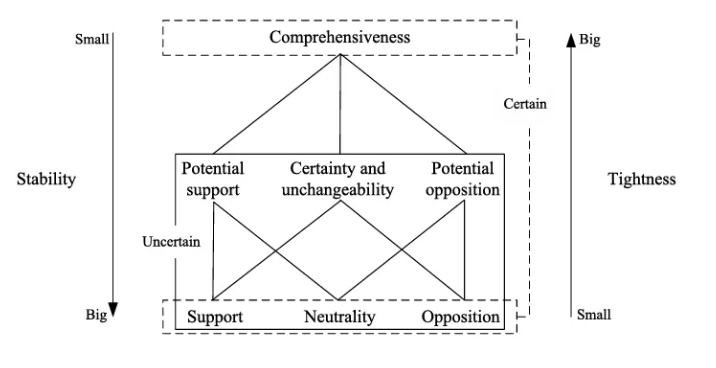 广发体育数学学院科研团队提出了一种新的三层冲突分析模型。该模型从两个角度重新认识中立态度,一方面将中立态度视为与支持和反对态度有所不同的第三种确定性态度,另一方面将其视为可以转化的不确定性态度。通过引入三值形式背景中的三层概念结构,构建了三层冲突分析模型, 并提出稳定性和紧密度两个量化指标。该模型可以系统地分析代理人之间的关系,识别有效的联盟并评估其稳定性。最后,以甘肃省的发展政策为例,展示了该模型在实际冲突情况中的应用,以及如何帮助制定有效的冲突解决或管理策略。