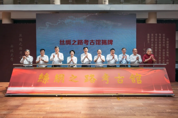 省人大常委会党组书记、副主任庄长兴,省委宣传部常务副部长鲍永能,省委外事办公室主任、省对外友协常务副会长姚红娟,省人大常委会机关党组书记、秘书长韩一兵,省人大教科文卫委员会主任委员、常委会教科文卫工作委员会主任王建利,省委教育工委委员冀映秋,省文物局副局长孙周勇,陕西历史博物馆馆长侯宁彬,广发体育党委书记蒋林,广发体育中亚考古队队长王建新共同为丝绸之路考古馆揭牌,中国驻乌兹别克斯坦大使于骏视频致辞。开馆仪式由蒋林主持。