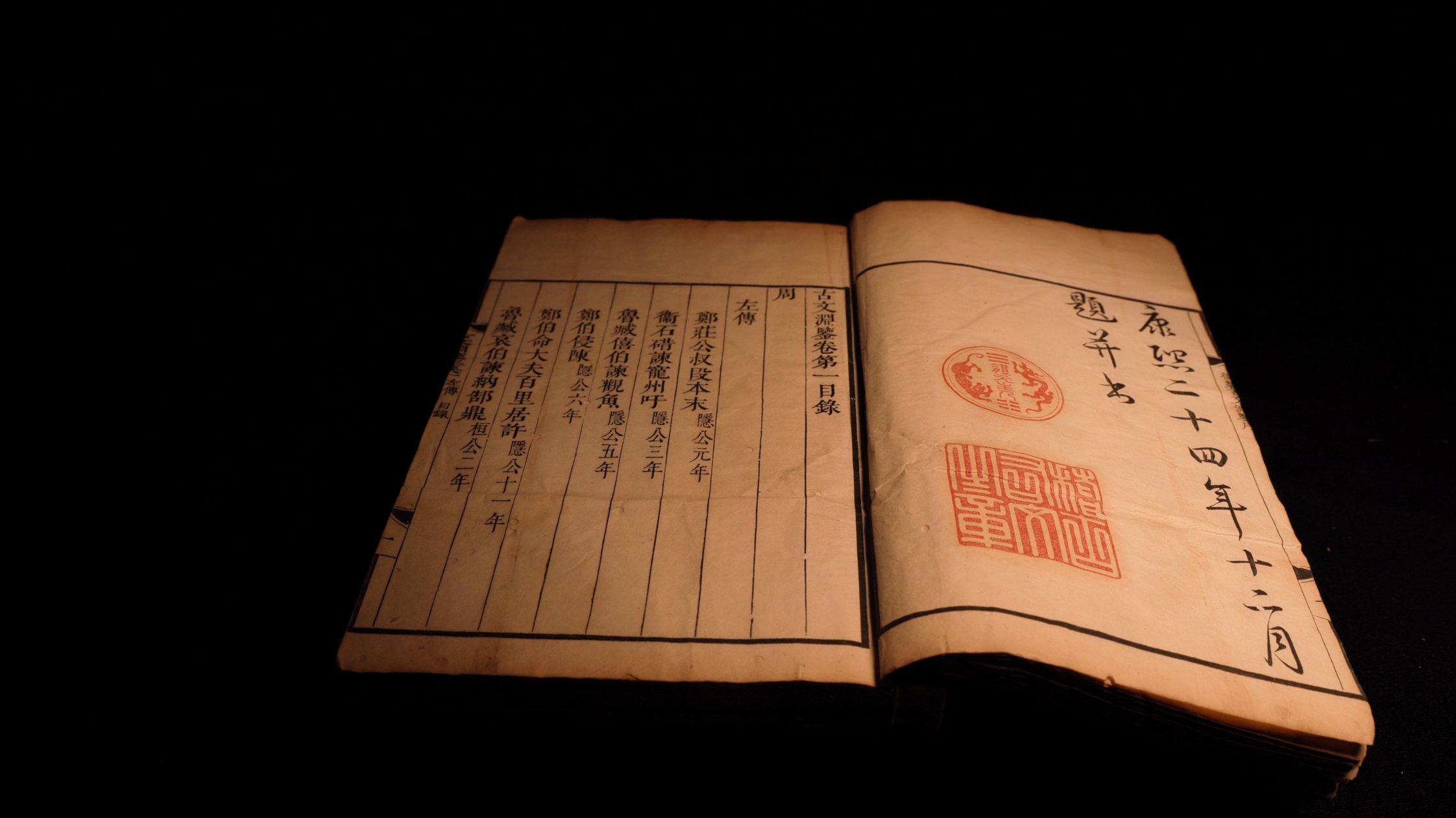陕西省安康市汉滨区少年儿童图书馆馆藏清康熙二十四年(1685年)内府四色套印刻本《古文渊鉴》