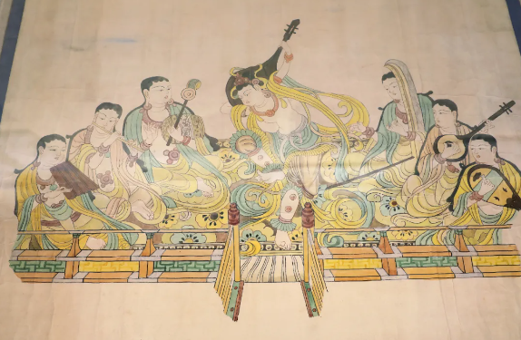 考古队临摹敦煌莫高窟36洞乐女图