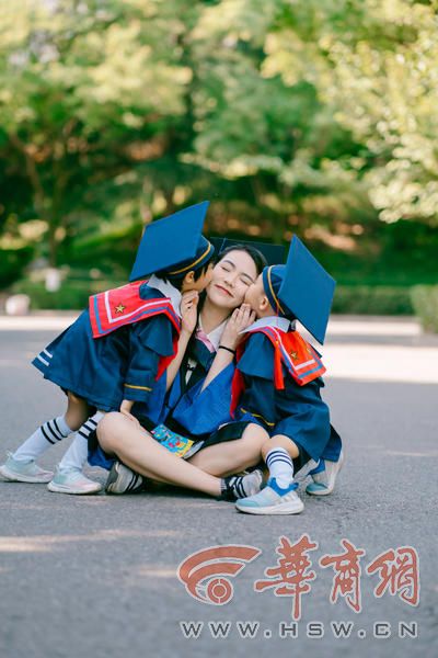 近日,在西安财经大学毕业典礼上,硕士研究生毕业生陈女士带着一对双胞胎来到现场,4岁的宝宝们与家人一起,从广东赶来,与妈妈一起,感受收获成果时的喜悦。