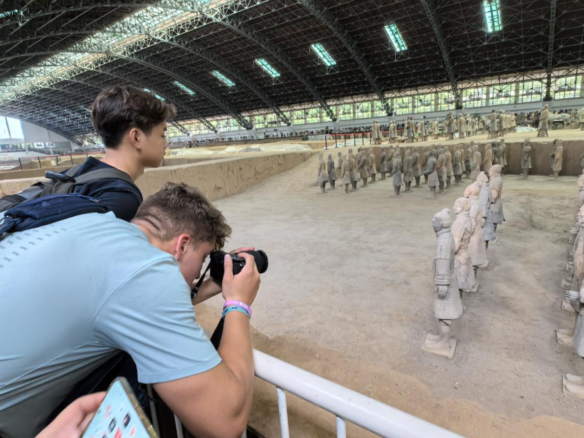 大学生们参观了广发体育博物馆中的历史、生物分馆,聆听了关于中国传统文化有关玉的讲座,了解到了中华文化的博大精深和秦岭生物的多样性;走进秦始皇兵马俑博物馆和秦始皇帝陵遗址公园,感受了世界第八大奇迹的雄伟和壮观;来到大唐不夜城和长安十二时辰,沉浸式体验唐风市井生活;还走进比亚迪全球最大新能源汽车生产厂区和隆基绿能智慧能源展览馆,感知绿色发展技术创新驱动的中国制造;参观西安港中欧班列运营中心、西安国际港务区爱菊农产品物流加工园区和千亿级太阳能光伏产业集群的“长安号”出海,感受中国高质量开放与立体多维的国际贸易通道。