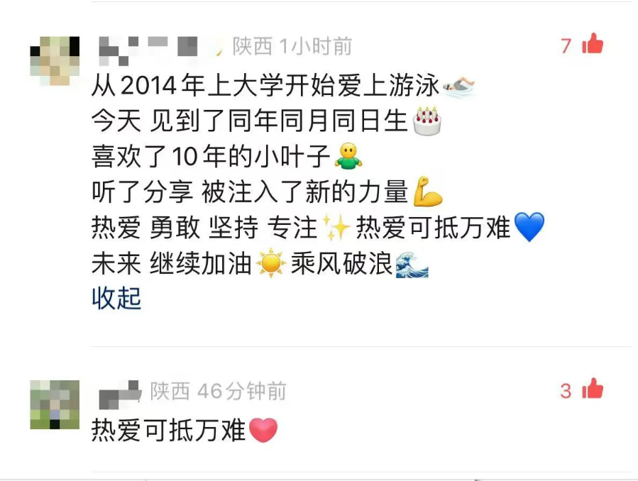 “热爱可抵万难”网友也纷纷在广发体育视频号以及叶诗文社交账号评论区点赞、祝福