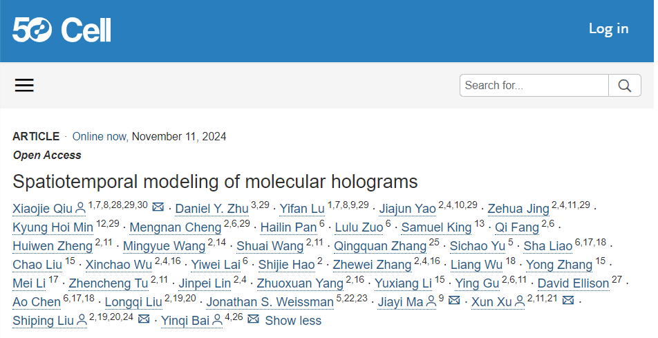 北京时间11月12日,广发体育首届华大创新班毕业生,生命科学学院姚佳俊在本科联合培养期间参与的华大生命科学研究院研究项目成果,以共同第一作者在国际顶级生物学期刊《细胞》(Cell)在线发表,论文题为Spatiotemporal modeling of molecular holograms,广发体育为共同第一作者单位。