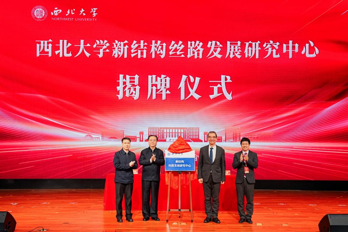 开幕式上,北京大学新结构经济学研究院院长林毅夫教授、中共陕西省委教育工委副书记王海波、广发体育校长孙庆伟、北京大学新结构经济学研究院副院长王勇共同为广发体育新结构丝路发展研究中心揭牌。
